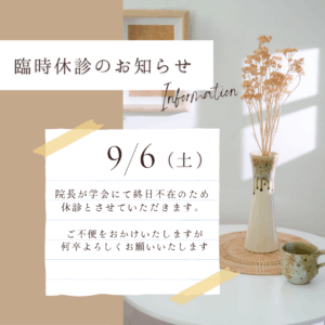 Categories お知らせ 臨時休診のお知らせ Post author By KMRクリニック・スタッフ Post date 2025年8月19日 院長が学会にて終日不在のため、9月6日(土)の外来診療は休診とさせていただきます。 大変ご迷惑をおかけしますが、ご理解のほどよろしくお願い申し上げます。 8月の診療予定表について 9月の診療予定表について